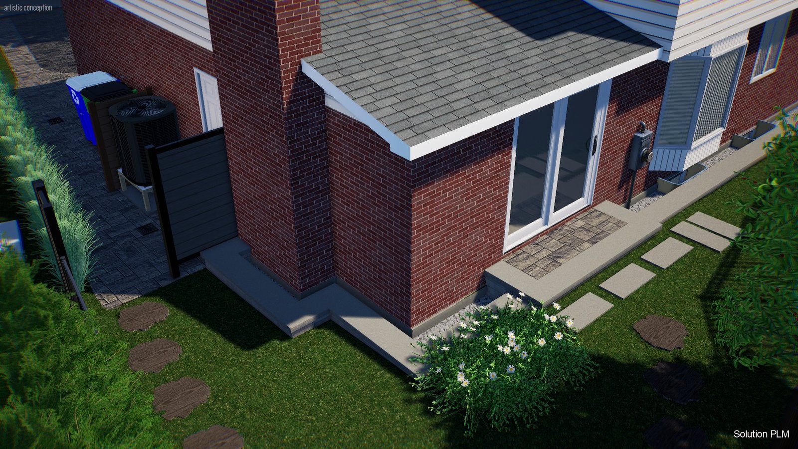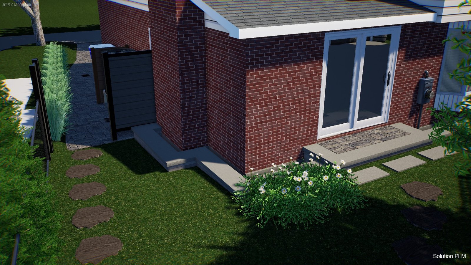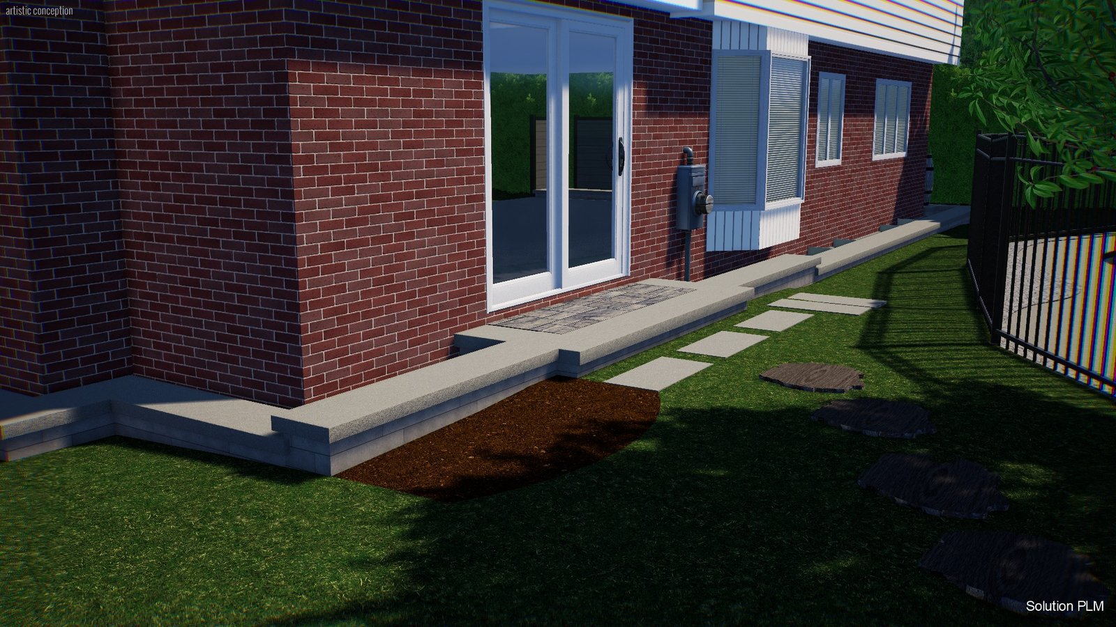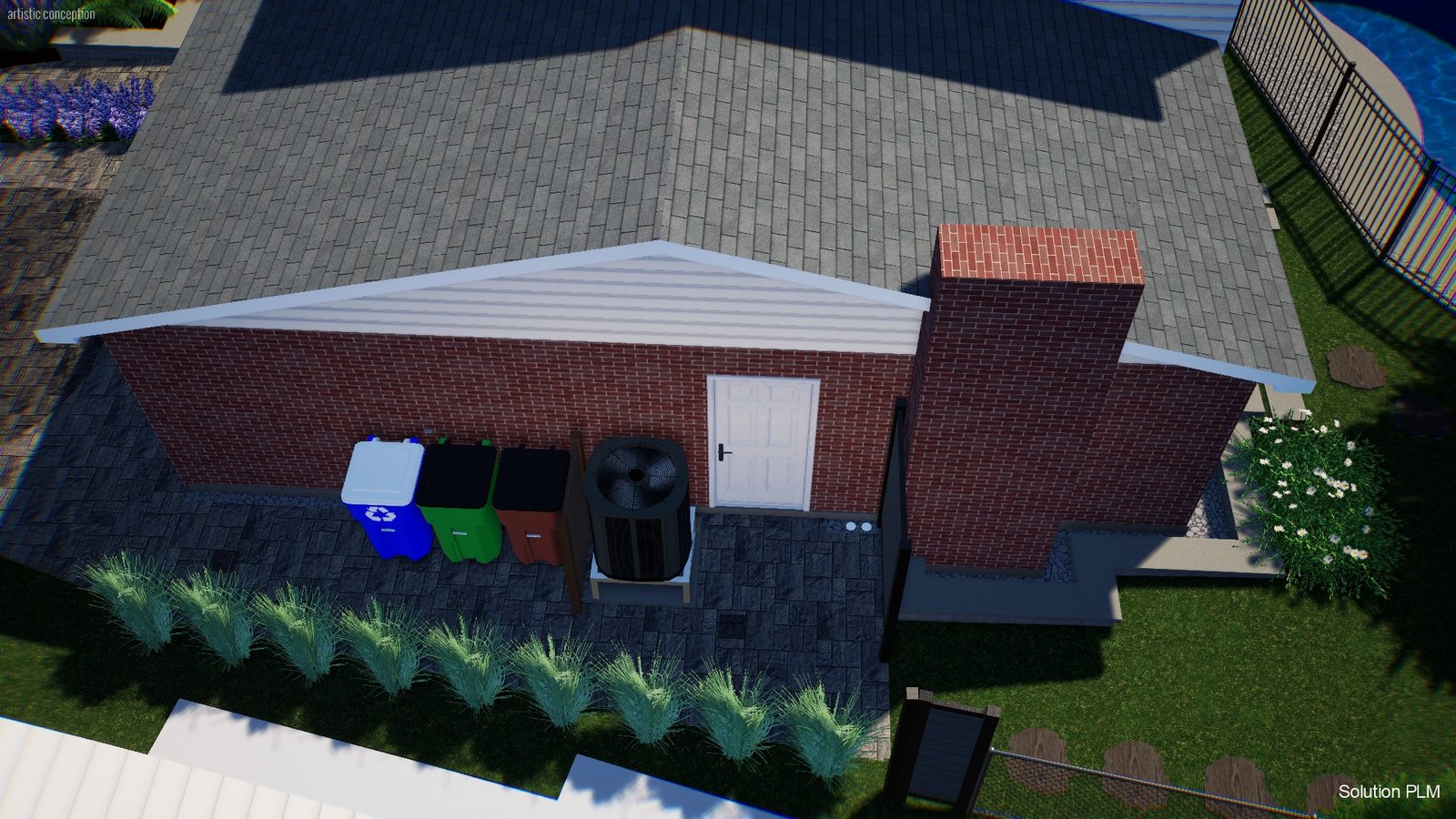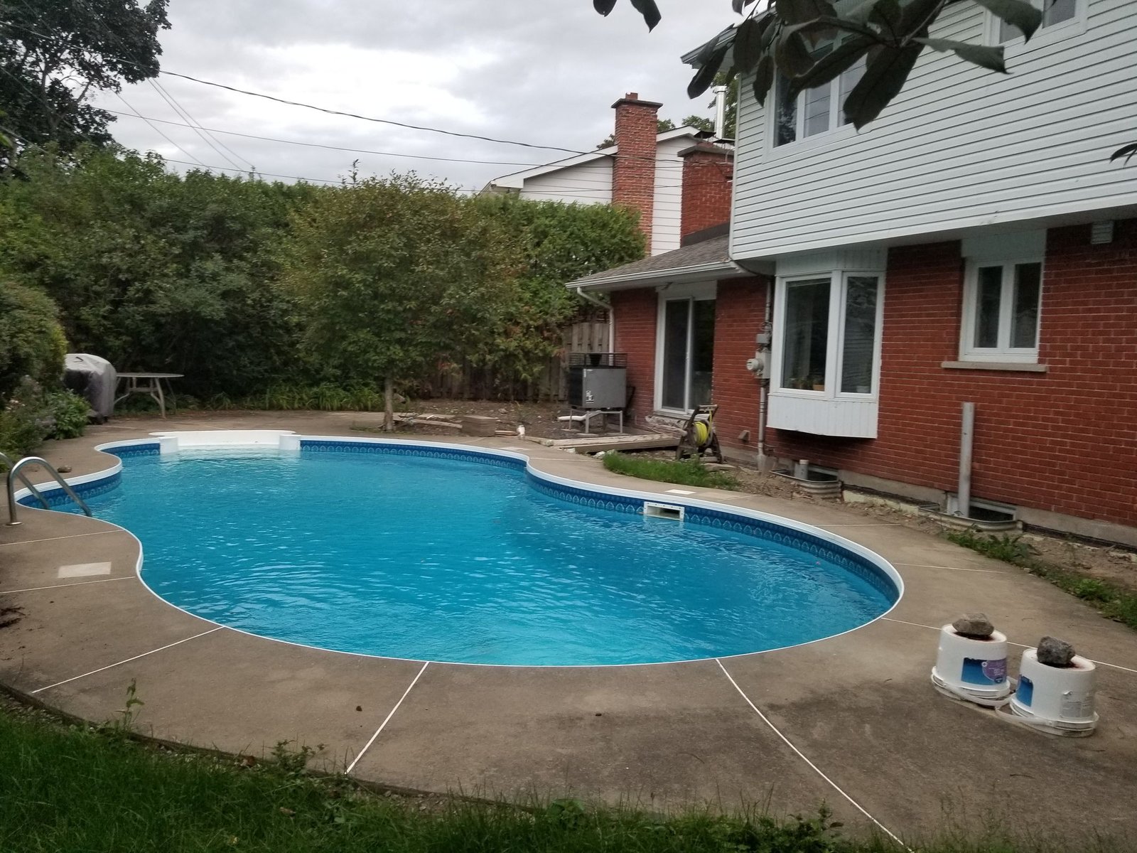 Aménagement d’un terrain après rénovation majeure, régler problème d’eau, clôture section piscine, zone de plantation.